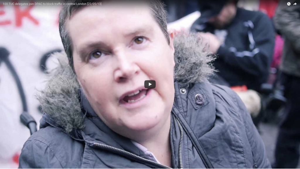After a passionate speech from Andy Greene inside congress house calling for immediate direct action, the TUC chair ends the conference and delegates join DPAC to block Tottenham Court Road for almost two hours.